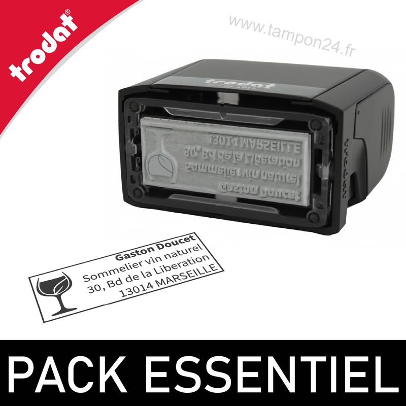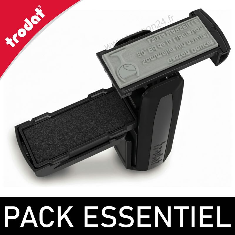 Le Pack Essentiel réunit deux tampons encreurs Trodat complémentaires, au format 4-5 lignes, pensés pour couvrir l'essentiel de vos besoins : un tampon de bureau et un tampon compact de poche à emporter partout.