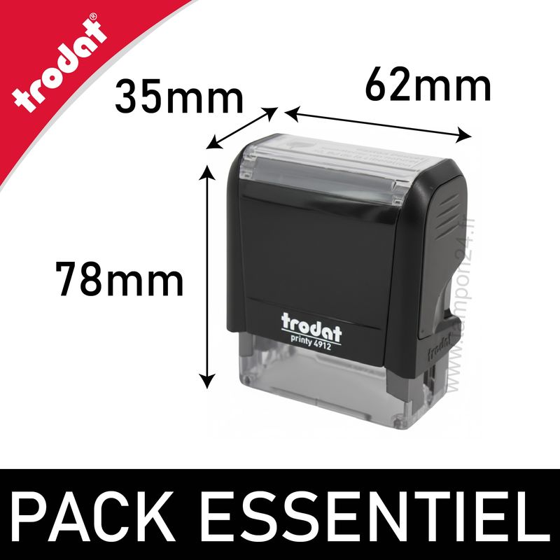 - Dimensions du boitier Trodat Printy 4912 : Boitier compact - Largeur 62mm - Profondeur 35mm - Hauteur 78mm.