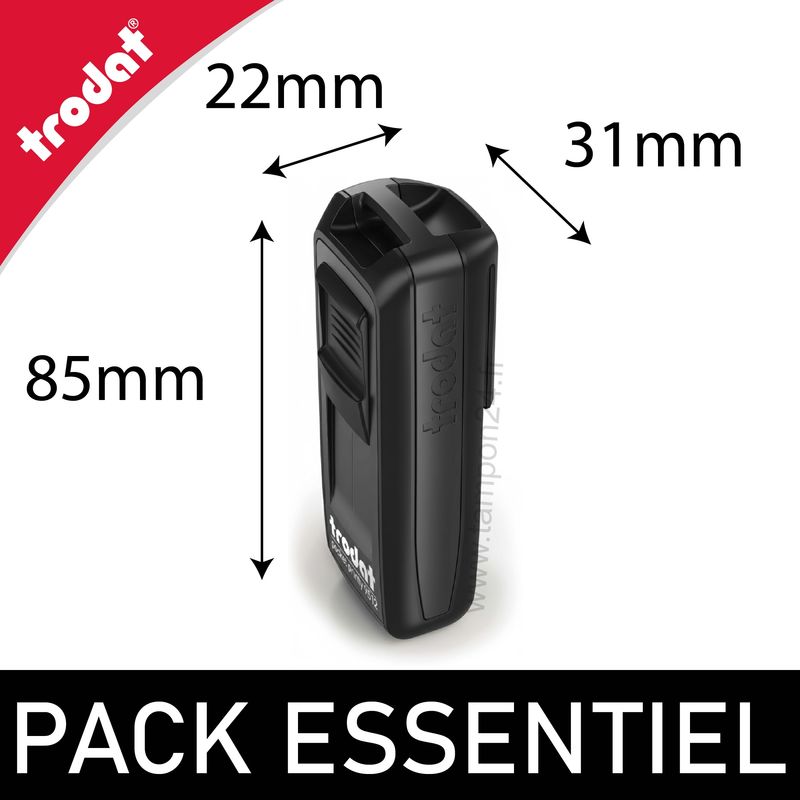 - Dimensions du boitier Trodat Pocket Printy 9512 : Boitier compact - Largeur 31mm - Profondeur 22mm - Hauteur 85mm.